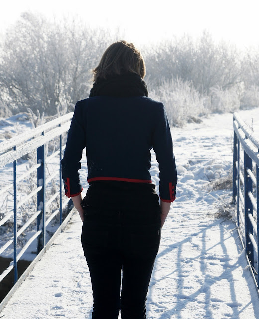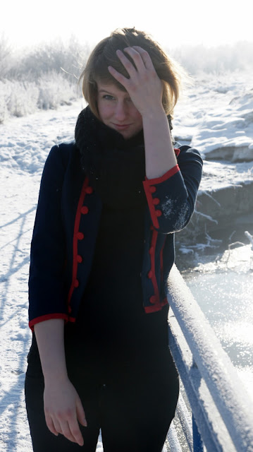 Marynarkę kupiłam w sh będą u mojej cioci w Choszcznie na feriach. Kuzynka odradzał mi ten zakup, ale ja nie mogłam przejść obok niej obojętnie. Od razu wpadła mi w oko, i pomyśleć że wisiała w dziale dziecięcym. Jestem zadowolona, postawiłam na swoim i teraz cieszę się z tego zakupu. Mam nadzieję że pojawi się jeszcze na tym blogu np. w innej stylizacji ;)